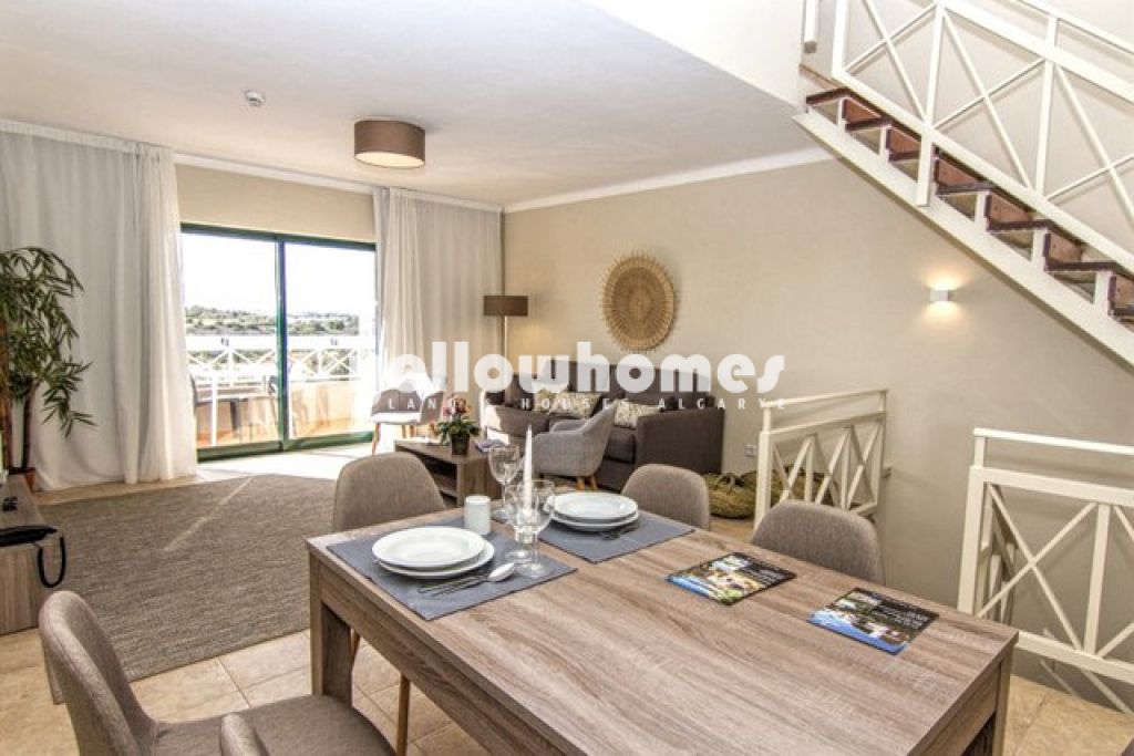 Apartamento T1 Duplex, localizado num conhecido condomínio de golfe perto do Carvoeiro, a uma curta distância a pé da praia. O apartamento é composto por 1 quarto, 1 casa de banho, cozinha equipada, sala de estar, varanda e terraço. O apartamento está completamente mobilado. O condomínio beneficia de uma piscina comum, jardins comuns, ginásio, spa e campo de ténis. Garantido 5% de retorno por ano durante os primeiros 2 anos.