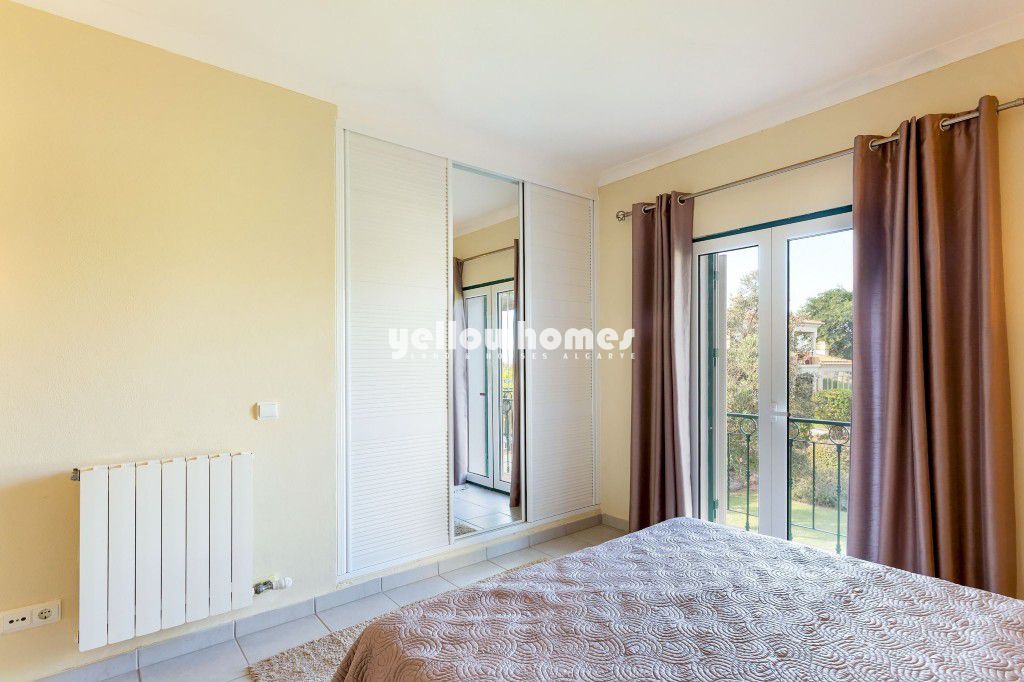 Este moderno e luminoso apartamento T2 está situado no primeiro andar, no coração de um campo de golfe, a poucos minutos do Carvoeiro, no encantador Barlavento Algarvio. O apartamento é composto por um espaçoso hall de entrada com acesso direto à sala de estar e uma grande varanda com uma vista cativante sobre a piscina. A cozinha encontra-se completamente mobilada e equipada com eletrodomésticos modernos. O grande quarto principal dispõe de um amplo roupeiro embutido e uma casa de banho privativa. O segundo quarto também possui roupeiros embutidos e partilham uma casa de banho de luxo. Para seu conforto, este apartamento está equipado com aquecimento central a gás. No exterior, os espaços de lazer comuns englobam jardins paisagísticos, uma piscina comum e um campo de ténis para usufruto dos residentes e convidados. Este apartamento é vendido completamente mobilado. A aquisição deste apartamento impecavelmente mantido garante uma ótima experiência de vida, mas também manutenção 24 horas por dia, jardinagem e serviços de segurança. Como proprietário, ser-lhe-á concedido o cartão de membro do empreendimento com uma série de benefícios e privilégios exclusivos em todos os campos de golfe do empreendimento, restaurantes e bares. À sua disposição estão 2 campos de golfe, dois club houses com restaurante e bar, vários campos de ténis e várias piscinas comuns. A gestão de todos os serviços, incluindo até mesmo o aluguer, se desejado, é habilmente gerida pelo condomínio. Esta notável oportunidade apresenta-se como um refúgio de férias ideal para a família, oferecendo grande lazer e comodidade.