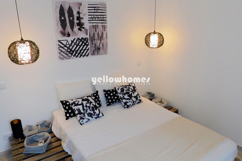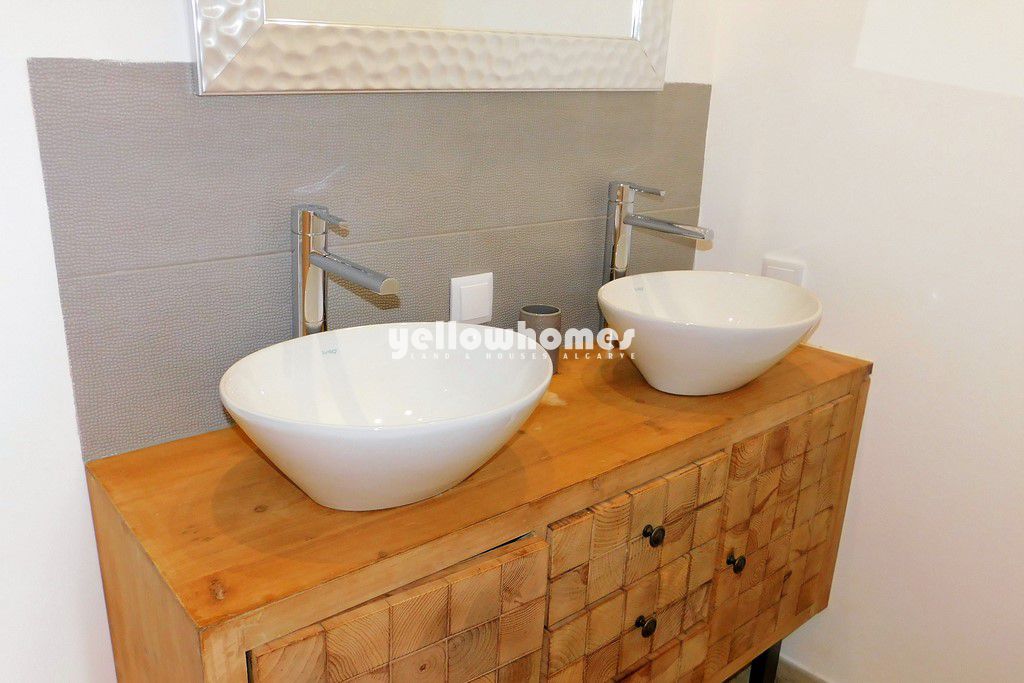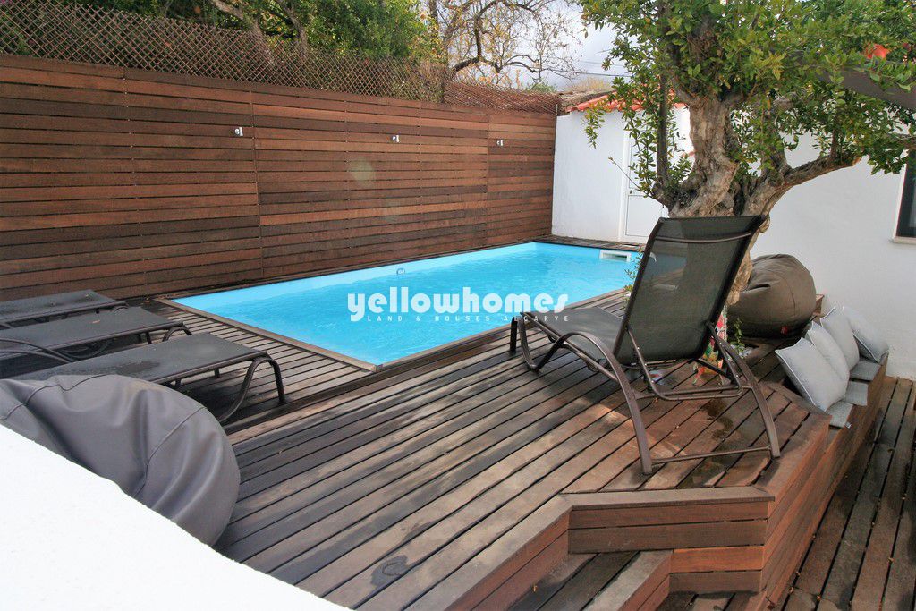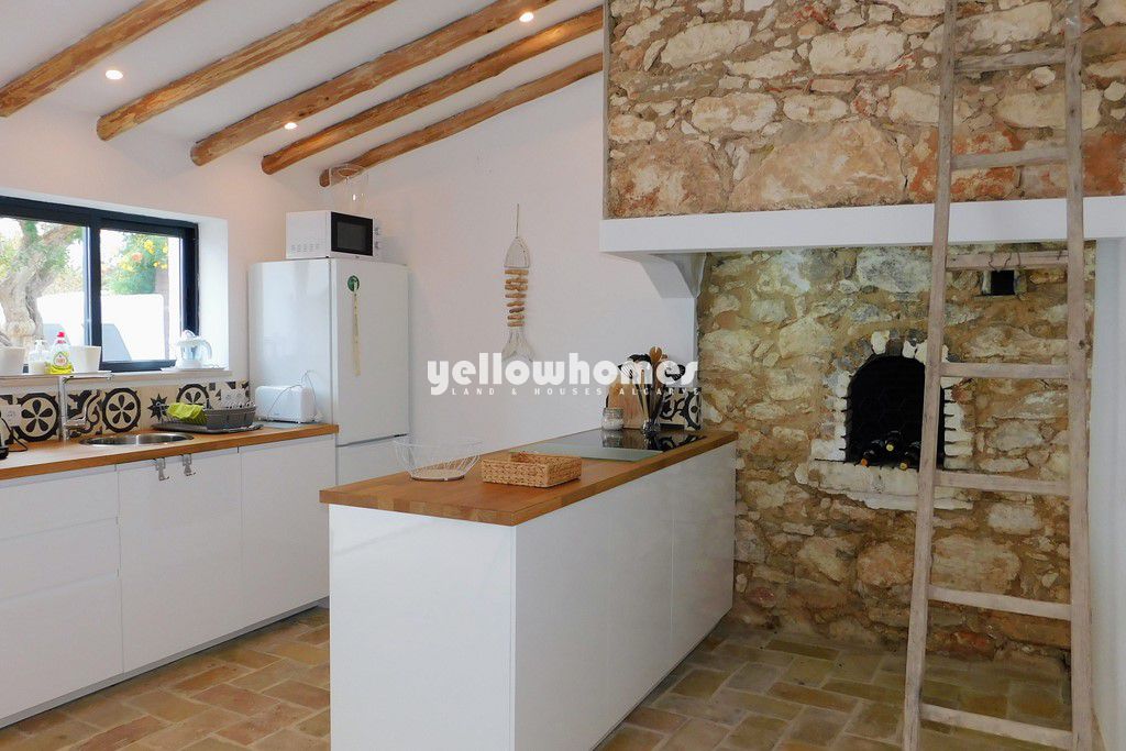 Para venda. Esta bonita casa tradicional completamente restaurada com bom gosto está convenientemente localizada perto da aldeia típica de Boliqueime, num pequeno terreno de fácil manutenção e com bons acessos. Vilamoura, com sua famosa marina, vários campos de golfe e praias de areia, fica a poucos minutos de carro. A propriedade beneficia de muitos acabamentos modernos e de alta qualidade, detalhes rústicos originais, como tetos de cana com vigas e muita luz natural. O pátio de fácil manutenção dispõe de uma pequena piscina de água salgada rodeada por decks, perfeito para banhos de sol e refeições ao ar livre e entretenimento. A casa é composta por uma cozinha em estilo campestre com um forno de pão tradicional com chaminé e zona de refeições, uma aconchegante sala com lareira e paredes de pedra originalmente mantidas. Uma escada leva ao terraço com 33m² que beneficia de belas vistas em direção ao mar. Existem no total 3 quartos bem decorados, um dos quais é a suíte principal com uma luxuosa casa de banho privativa, uma outra casa de banho e um WC. O quarto principal também tem acesso ao terraço e piscina. A propriedade oferece a combinação perfeita de design moderno com detalhes rústicos originais estando decorada com bom gosto em cores naturais.