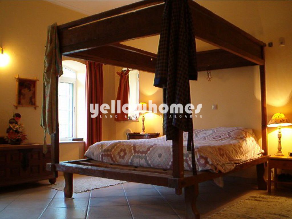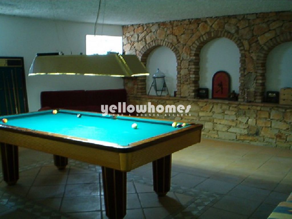 Moradia de estilo rural bem apresentada virada a sul com piscina e belas vistas, localizada numa zona calma e tranquila perto de Loule. A moradia é composta por um hall de entrada, casa de banho social, ampla sala de estar com lareira e zona de refeições, grande cozinha totalmente equipada em estilo campestre com ilha de cozinha e lareira, 4 quartos com roupeiros embutidos (um deles com vestiário) e todos com casa de banho privativa, escritório e arrecadação. Uma escadaria em pedra natural conduz à cave com ampla sala de jogos e arrecadação. As portas de correr da cozinha e da sala de estar conduzem aos terraços parcialmente cobertos e à grande piscina (13,5 x 6,5m2) (sistema de água salgada), duche exterior e jardins paisagísticos com rega automática. Existe um anexo com kitchenette, casa de banho e quarto duplo. A propriedade beneficia de paredes espessas, tectos altos, bom isolamento, ar condicionado, caleiras, vidros duplos, redes mosquiteiras, musica ambiente, pavimento em cerâmica com decoração em pedra natural, telefone, TV satélite, furo, cisterna (180.000 litros) e fossa. Vendido completamente mobilado. Certificado de Energia C.