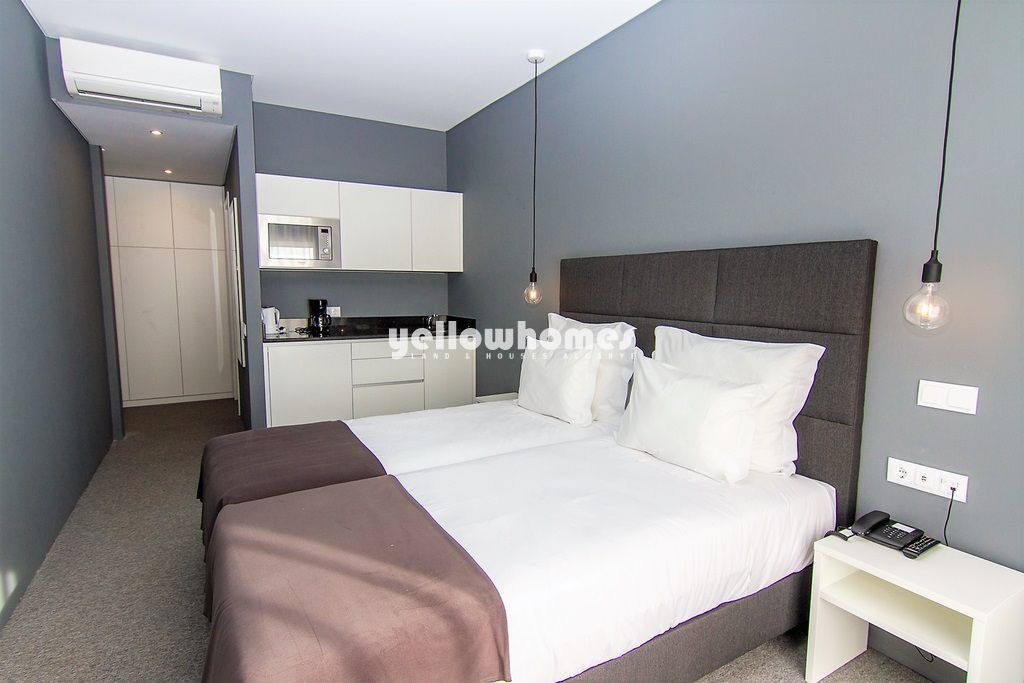 Apartamento T0 completamente mobilado, localizado num condomínio privado perto do Carvoeiro. O apartamento é composto por quarto, 1 casa de banho, kitchnette equipada, piscina comum, campo de tênis, ginásio e SPA. Os alugueres garantem um retorno de 5% nos primeiros 2 anos. Entre em contato connosco para mais informações!