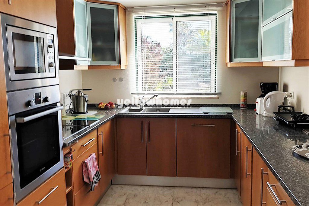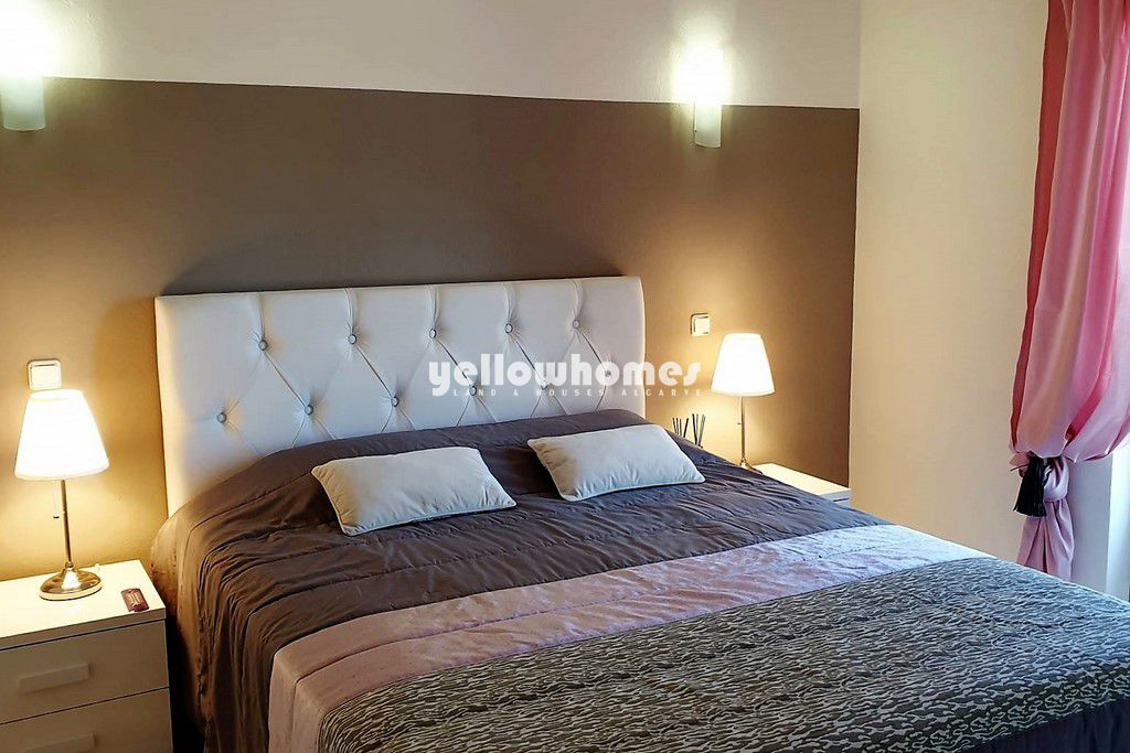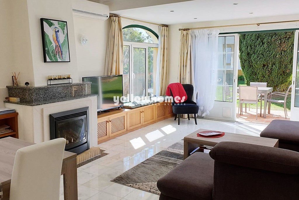 Casa/apartamento T2 + 1 localizado num condomínio de Golfe perto do Carvoeiro, com vistas fantásticas para o campo de golfe e a zona da piscina. O imóvel é composto por 2 quartos + 1 quarto pequeno, 2 casas de banho, sala de estar- jantar com lareira, cozinha equipada, jardim com piscina comum. Completamente mobiliado. O condomínio tem 2 campos de golfe, dois clubhouses com bares e restaurantes, campos de ténis, um Health Spa, várias piscinas comuns e segurança 24 horas no local e à noite e está fechado com entrada de segurança. A propriedade foi construída no mais alto padrão e será vendida com direitos a golfe.