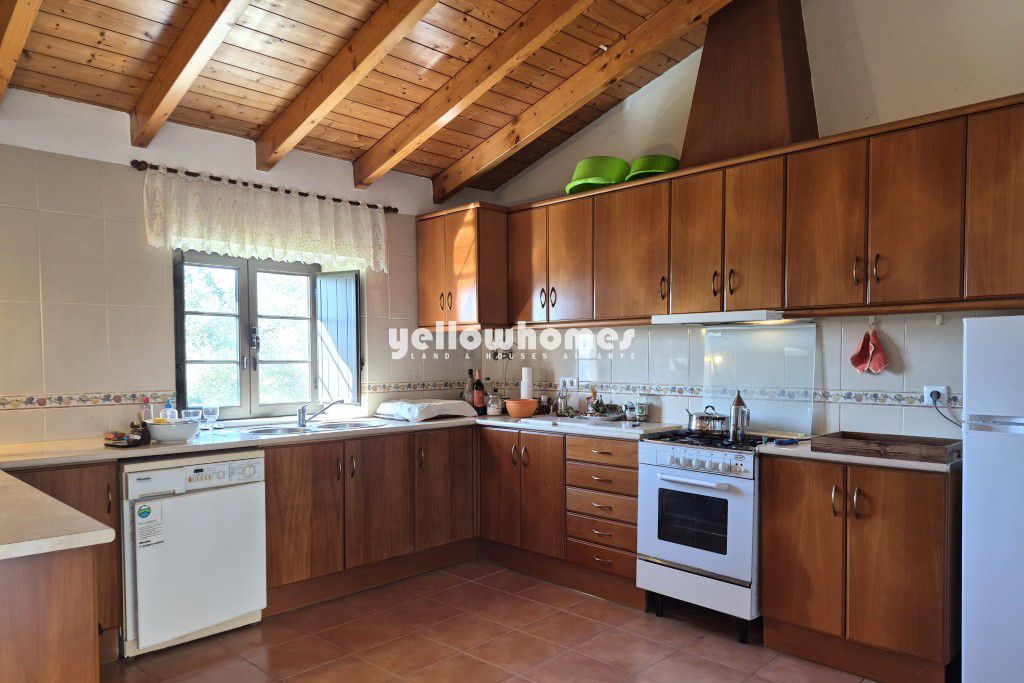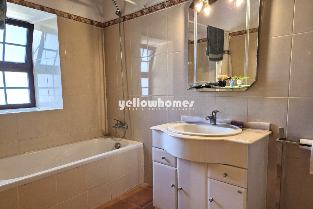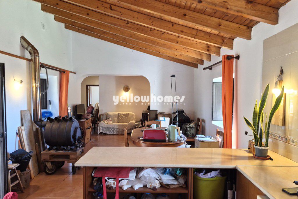 Esta encantadora casa de campo térrea combina um caráter rústico com paz, privacidade e vistas deslumbrantes sobre as colinas circundantes. Virada a oeste, desfruta de belos pores-do-sol e é ideal para quem procura um autêntico estilo de vida rural algarvio. No interior, a casa apresenta tetos altos de madeira na cozinha e na sala de estar, uma cozinha em plano aberto ligada à sala de estar e uma acolhedora lareira. As molduras das janelas em pedra natural, os vidros duplos e as tradicionais persianas interiores realçam o ambiente acolhedor de uma casa de campo. A casa é composta por dois quartos e duas casas de banho. No exterior, um pequeno pátio abrigado com árvores de médio porte proporciona um local relaxante para desfrutar do ar livre. A propriedade beneficia de duas entradas separadas (uma de cada lado), um poço privado para água, internet fibra ótica, perfeita para viver a tempo inteiro, como casa de férias ou para arrendamento. Uma vantagem importante é a classificação do terreno: o lote é urbano e está localizado dentro de uma aglomeração urbana, permitindo uma potencial expansão do edifício até aproximadamente 300 m2, oferecendo um excelente potencial de valorização. Embora a propriedade ainda precise de alguns cuidados e melhorias, ela tem um potencial significativo para personalização e valorização. Situada na natureza, mas perto de comodidades, fica a cerca de 10 minutos do campo de golfe mais próximo, a 15 minutos da cidade mercantil de Loulé, a 35 minutos do Aeroporto de Faro e a cerca de 30 minutos da praia. Uma oportunidade rara para quem procura o estilo de vida relaxado do campo algarvio, numa localização tranquila, cheia de charme e com um potencial extraordinário, mas ainda assim perto de todas as comodidades.