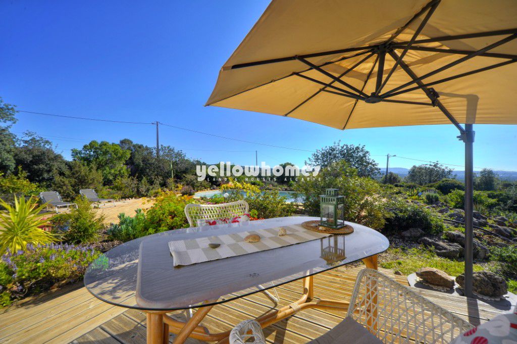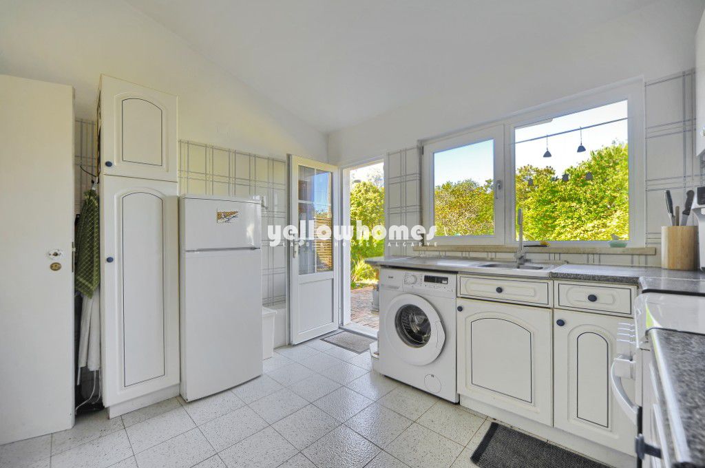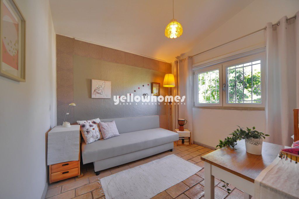 Venda exclusiva na Yellow Homes! Encantadora moradia isolada com 3 quartos, situada num terreno privado de boas dimensões, a uma curta distância de carro de Vilamoura, Almancil, praias e comodidades do centro do Algarve. Esta moradia bem conservada fica localizada numa zona rural onde a privacidade, o conforto e o autêntico encanto do Algarve se combinam na perfeição. Situada a sul de Loulé, a apenas alguns km de Vilamoura e das famosas praias de Falésia, esta propriedade térrea oferece um ambiente muito especial. A moradia fica implantada num generoso terreno plano de 2.000 m2 com vistas encantadoras sobre a paisagem rural circundante, criando um ambiente tranquilo e relaxante, mantendo-se convenientemente perto da costa, dos campos de golfe e de todas as comodidades. O terreno, parcialmente natural, apresenta árvores e arbustos típicos do Algarve, conferindo à propriedade um carácter autêntico e exigindo apenas uma manutenção moderada. Rodeada por um muro de pedra tradicional, a propriedade oferece excelente privacidade, com apenas algumas propriedades vizinhas nas proximidades. Uma boa estrada de acesso conduz à casa. A casa foi concebida num prático estilo de um único piso e apresenta uma disposição acolhedora. É composta por uma sala de estar luminosa com salamandra a pellets, dois quartos com roupeiros embutidos, uma casa de banho familiar e uma cozinha com acesso direto à zona de BBQ no exterior e à piscina, perfeita para desfrutar de refeições ao ar livre. Além disso, existe um anexo separado para hóspedes que dispõe de um quarto/sala de estar, uma kitchenette e uma casa de banho moderna, ideal para receber familiares e amigos ou para alojamento independente de hóspedes. A moradia foi recentemente renovada com novas janelas de correr de vidro duplo de grande qualidade com isolamento térmico, melhorando tanto o conforto como a eficiência energética. No exterior, a propriedade dispõe de uma piscina e de um encantador terraço na cobertura, de onde se pode desfrutar de vistas panorâmicas sobre o campo. Outras características incluem um sistema solar fotovoltaico, um furo licenciado para abastecimento de água, toldos retráteis e um terreno totalmente vedado, garantindo privacidade e segurança. Uma propriedade repleta de personalidade e potencial, onde se sentirá em casa. Uma oportunidade rara de adquirir um refúgio privado numa localização tranquila, mas central, perto de Vilamoura e da costa algarvia – ideal como residência permanente ou como casa de férias no ensolarado sul de Portugal.