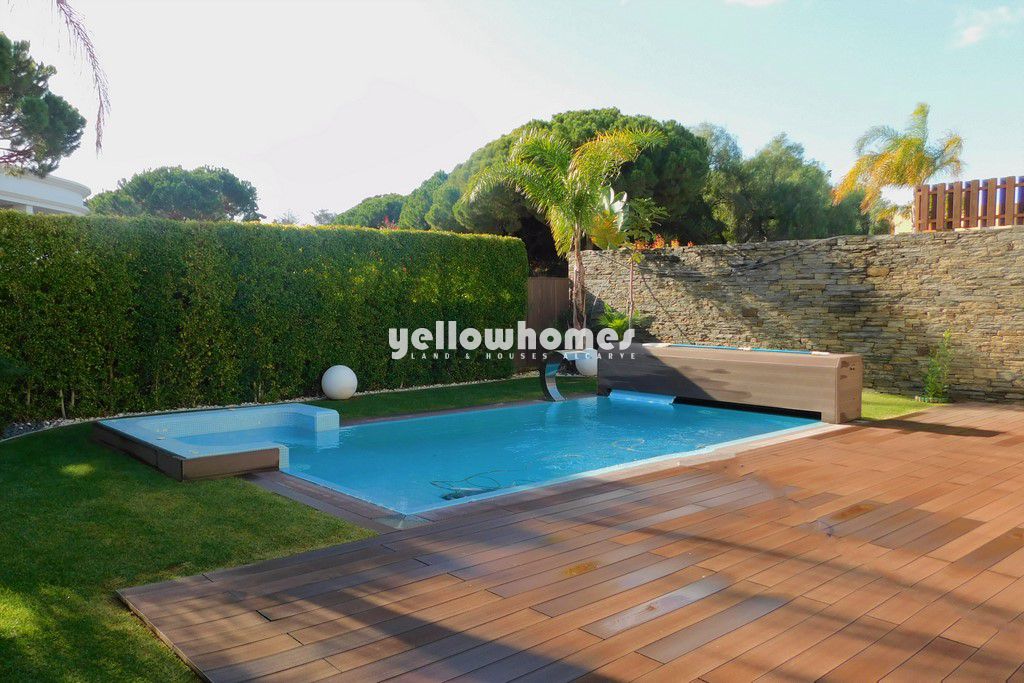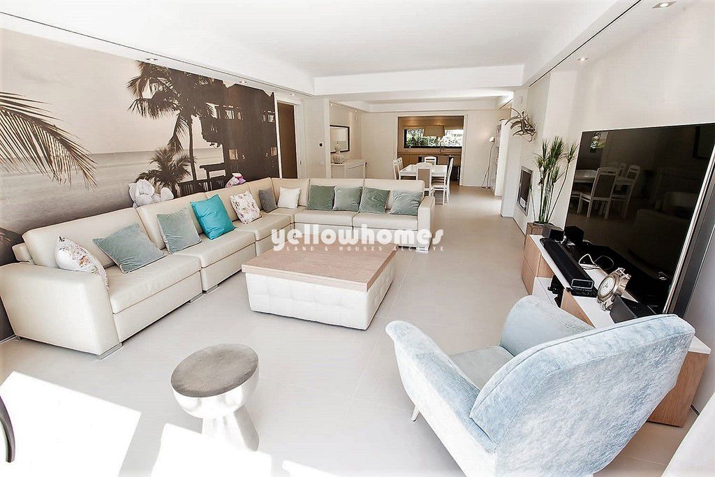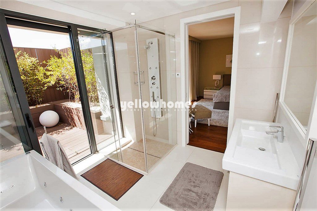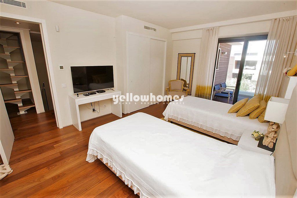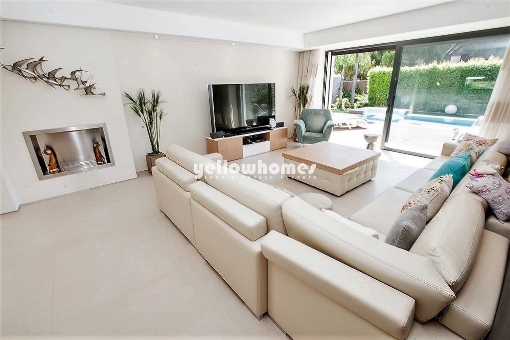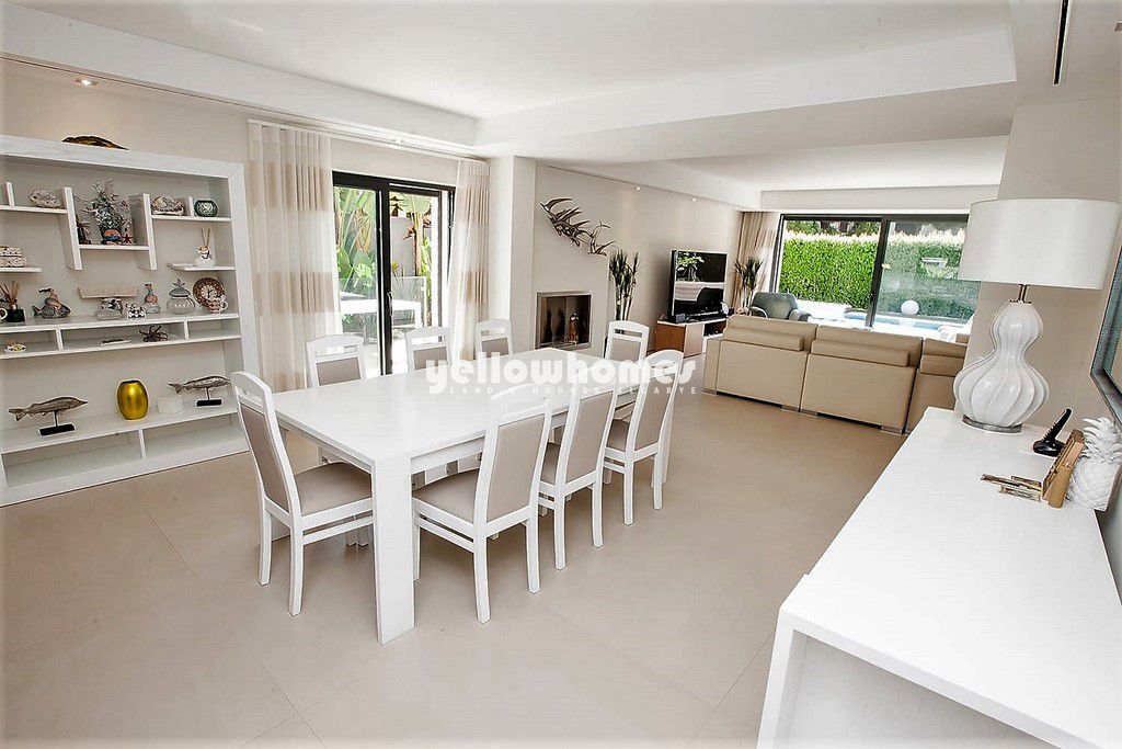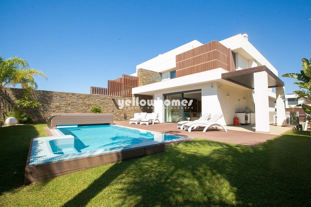 Esta deslumbrante moradia recentemente construída com 450m2 de área de construção faz parte de uma pequena urbanização a uma curta distância da praia e de todas as comodidades. Com acabamentos de grande qualidade sita a apenas 200m de distância da reserva natural e praias douradas da Falésia. Oferecendo um estilo de vida de baixa manutenção com múltiplos espaços de estar e jantar, quatro quartos e uma cozinha moderna completamente equipada com electrodomésticos de grande qualidade, esta jóia arquitectónica é ideal para as necessidades de uma família moderna. Proporcionando uma vida de luxo, a qualidade combinada com o cenário sublime faz com que seja o investimento perfeito como residência permanente.