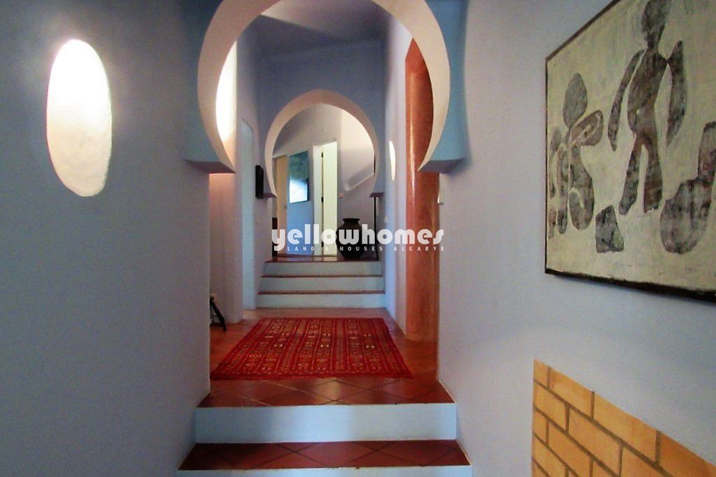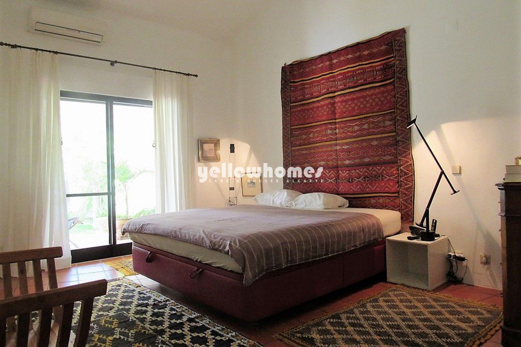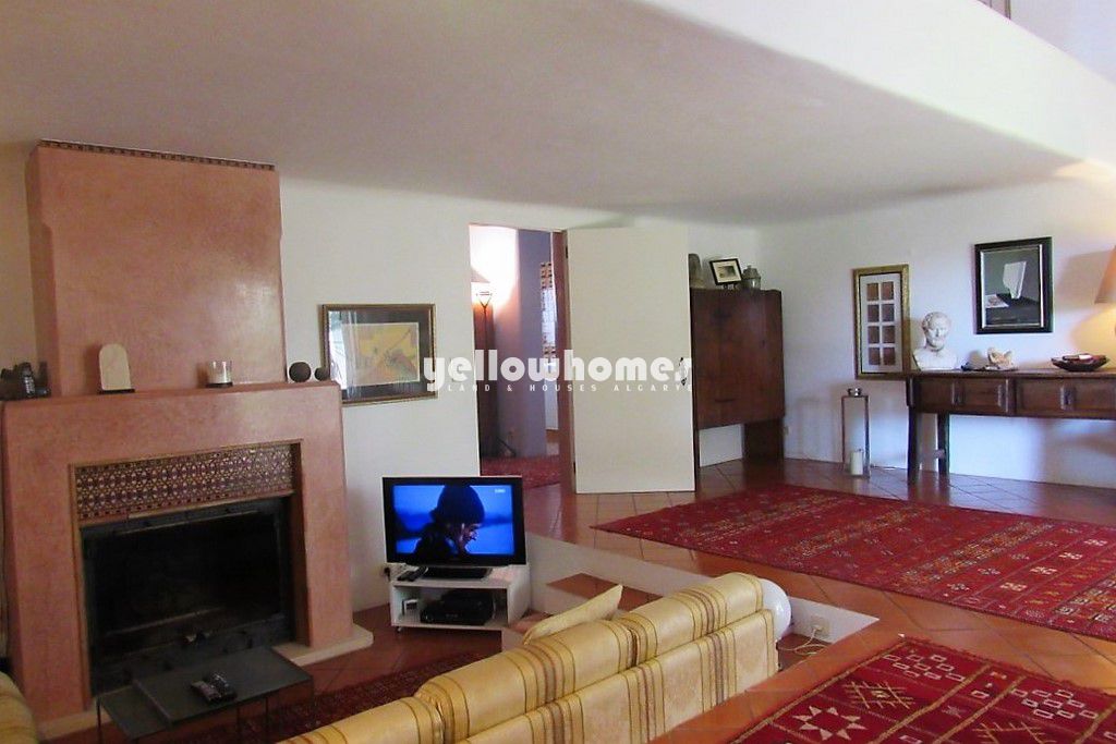 Encantadora moradia V3 localizada num ambiente sereno e tranquilo perto de todas as comodidades. Um portão de entrada em frente da casa leva a um amplo estacionamento para 4-5 carros e uma garagem. A moradia encontra-se num estado imaculado e é composta por um corredor, sala de jantar e uma sala de estar com lareira Os tectos altos proporcionam uma atmosfera mourisca. Acima da sala existe uma biblioteca e um escritório. Esta bonita moradia dispõe ainda de três generosos quartos com roupeiros, duas casas de banho (1x em suite) que foram recentemente renovadas com bom gosto e têm toalheiros eléctricos e um vestiário. Dois dos quartos têm seus próprios terraços privados. A moderna cozinha encontra-se completamente equipada e dispõe de uma grande despensa e uma área de refeições, perfeita para experiências gastronómicas e convívio. A garagem liga diretamente com a cozinha dando menos esforço com as compras. Existem ainda vários terraços cobertos um com BBQ e um forno de pão /pizza. A piscina encontra-se protegida do vento e completamente privada. O extenso terreno com 7.250 m2 fica separado da casa principal e é actualmente usado apenas para cultivo com muitas árvores de fruto e vegetação mediterrânica. A propriedade dispõe ainda de um anexo separado com várias divisões usado como alojamento para animais e que pode ser perfeitamente convertido num apartamento independente ou outro. Embora localizada numa zona rural fica apenas a 5 minutos de carro do centro comercial do Algarve e a uma curta distância de carro de Albufeira, com uma grande variedade de praias, restaurantes, bares e lojas. Certificado de Energia C.