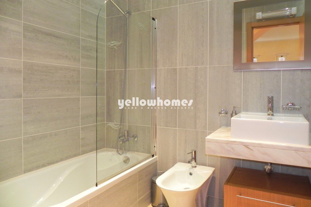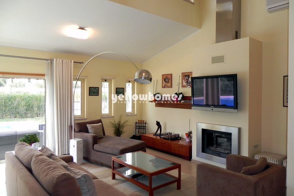 Esta espetacular propriedade fica localizada num condomínio privado perto de Almancil e Vale do Lobo e a curta distância de vários restaurantes, um supermercado, bares e da praia. O imóvel, vendido com mobiliário italiano de alta qualidade é composto por 4 quartos, 3 casas de banho (2 em suite), sala de estar e jantar com lareira, cozinha totalmente equipada, arrecadação, zona de escritório e uma cave com sala de jogos e garagem. O imóvel beneficia de vidros duplos, estores eléctricos, TV satélite, ar condicionado, aspiração central, sensores de água e gás, alarmes de pânico, alarme de infravermelhos no jardim, aquecedores nas casas de banho, aquecimento de água a gás, pré-instalação para aquecimento central e água da rede. Externamente a propriedade tem uma piscina privada de água salgada em forma de L, um jardim privado com gazebo perfeito para refeições ao ar livre, uma cascata e um jardim comum. A propriedade é privada, segura e encontra-se em excelentes condições.