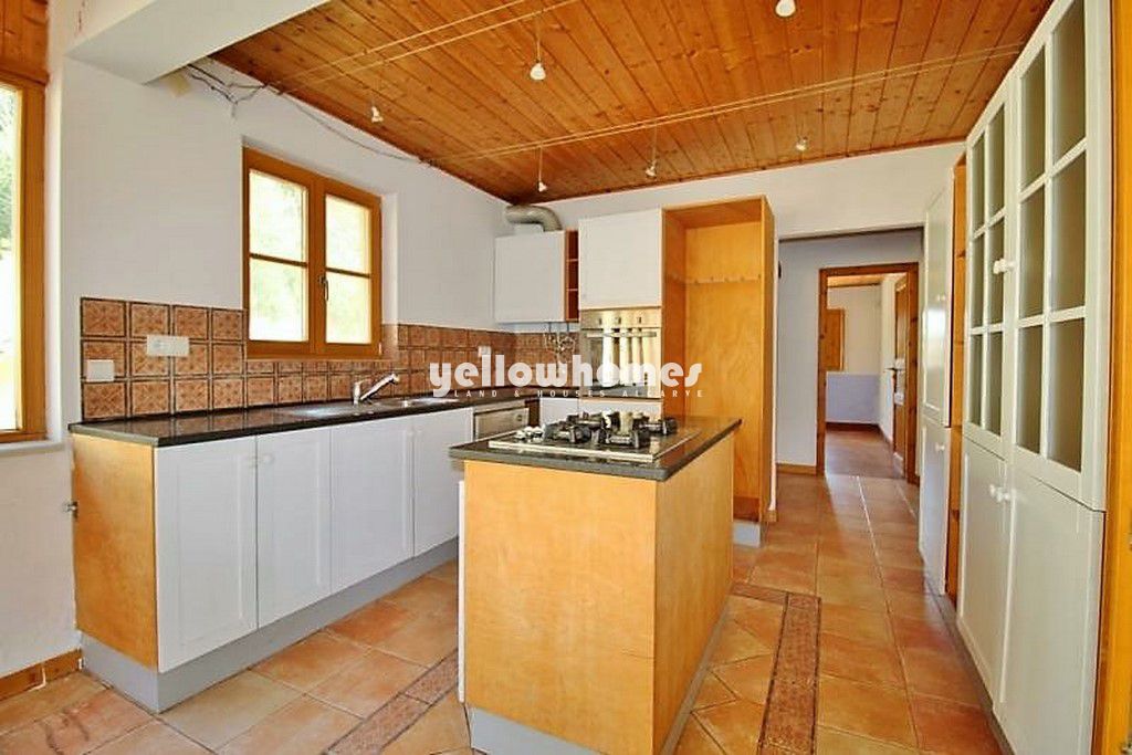 Para venda: Esta propriedade está localizada numa zona rural tranquila e oferece fácil acesso a comodidades e a uma curta distância de carro da cidade costeira de Lagos. Um bom layout da sala, um jardim de inverno e dois amplos terraços, um dos quais coberto, fazem desta propriedade aconchegante um ótimo lugar para uma família numerosa com crianças e animais de estimação. Bom acesso e amplo estacionamento para vários veículos. O lote de terreno com mais de 4.000 m2 encontra-se completamente vedado, tem pinheiros, palmeiras e oliveiras e oferecem muito espaço de acordo com as necessidades do novo proprietário. Com o furo existente o terreno pode facilmente ser regado. A moradia é composta por um terraço coberto, sala de estar com lareira, cozinha com zona de refeições no jardim de inverno, dois quartos e duas casas de banho (1x em suíte). No andar de cima encontra-se um grande espaço aberto / sótão, que atualmente está sendo usado como escritório e sala de recreação, mas também oferece espaço para mais dois quartos ou salas para crianças. Uma casa de banho pode ser decorada individualmente. A cisterna e a casa das bombas estão localizadas no quintal da propriedade, perto da garagem. Há também um canil. As paredes externas são finalizadas com um spray isolante térmico e muitos acabamentos são de madeira (piso, teto, janelas), proporcionando à casa uma atmosfera muito aconchegante. A propriedade oferece muito potencial como casa de família.