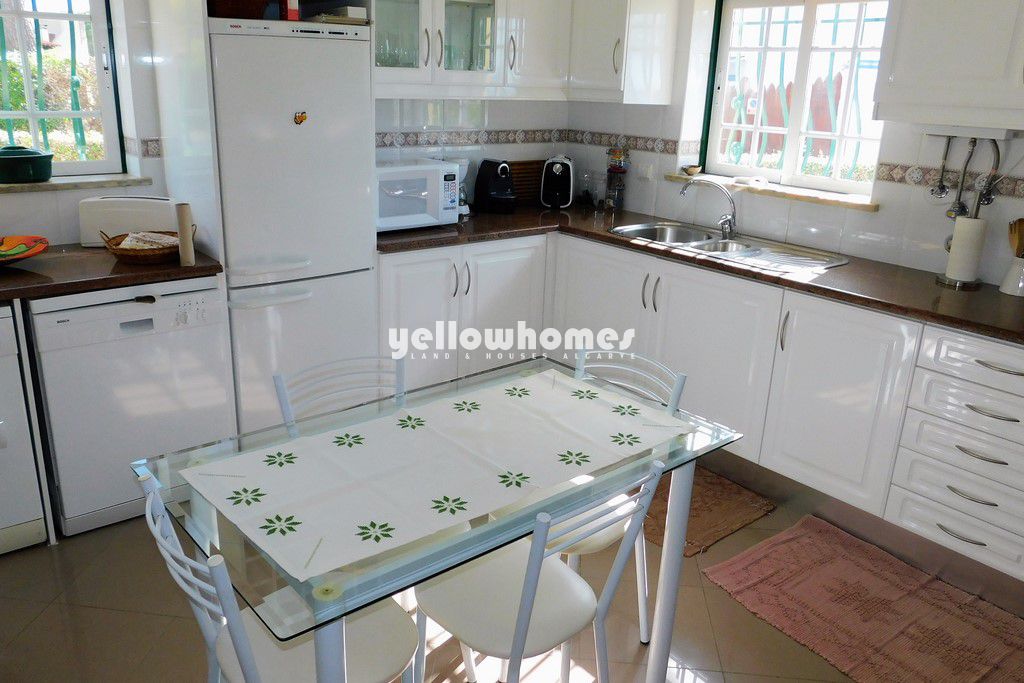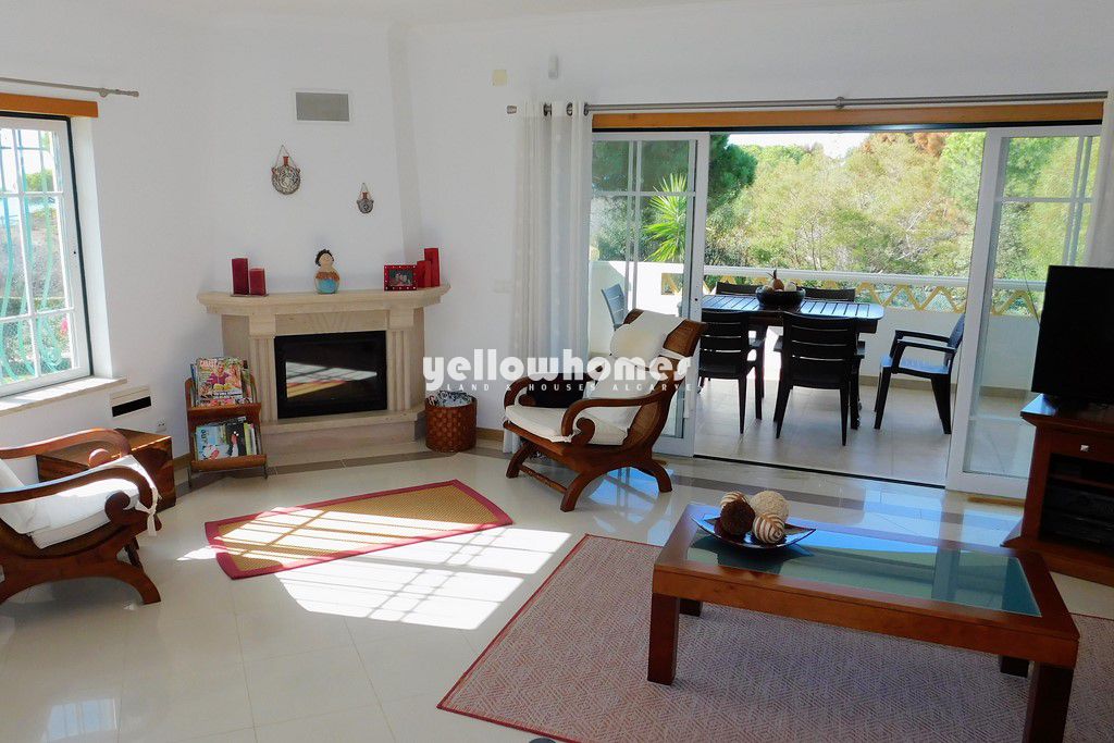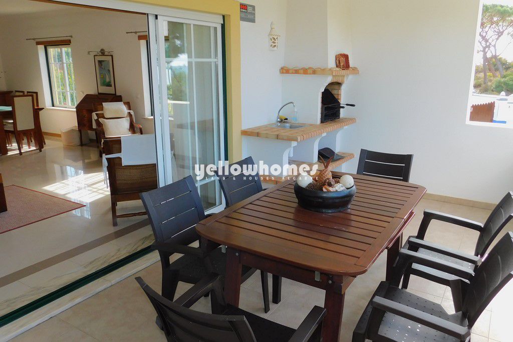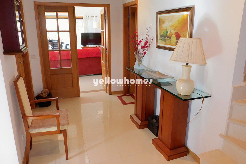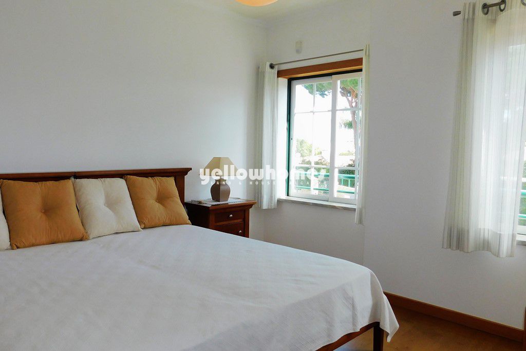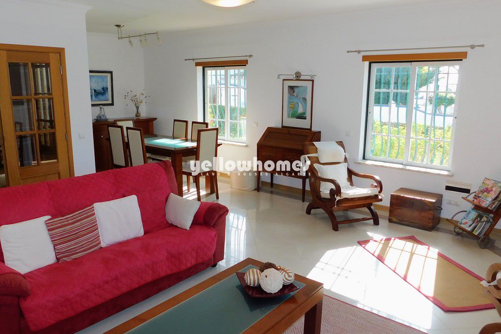 Venda exclusiva: Esta imaculada propriedade completamente mobilada faz parte de um pequeno condomínio privado com piscina entre Vilamoura e Albufeira e encontra-se numa localização privilegiada a poucos passos da praia, com fantástica vista mar. A casa de esquina é composta por 3 pisos. O rés-do-chão é composto por um hall de entrada, casa de banho social, cozinha completamente equipada com área de pequeno-almoço e despensa, sala de estar-jantar com lareira e acesso a um terraço coberto. O 1º andar é composto por 3 quartos e 2 casas de banho (1x em-suite). Todos os quartos têm roupeiros/zonas de vestir e 2 dos quartos têm acesso a terraços desfrutando de belas vistas para o mar. Uma escada interna tem acesso à cave/ garagem muito espaçosa com portão automáticas. O terraço virado a sul/oeste no rés-do-chão tem um BBQ perfeito para refeições ao ar livre. O terraço também tem acesso ao jardim comum bem conservado com grande relvado e á piscina com duche. As impressionantes falésias da praia da Falésia ficam a um passo de distância. A propriedade beneficia de ar condicionado, vidros duplos, estores elétricos e tem pavimento em cerâmica de cor creme ou laminado. Esta é uma oportunidade única de adquirir uma propriedade fácil de manter tão perto da praia num local muito procurado. Venda exclusiva. Contacte-nos!