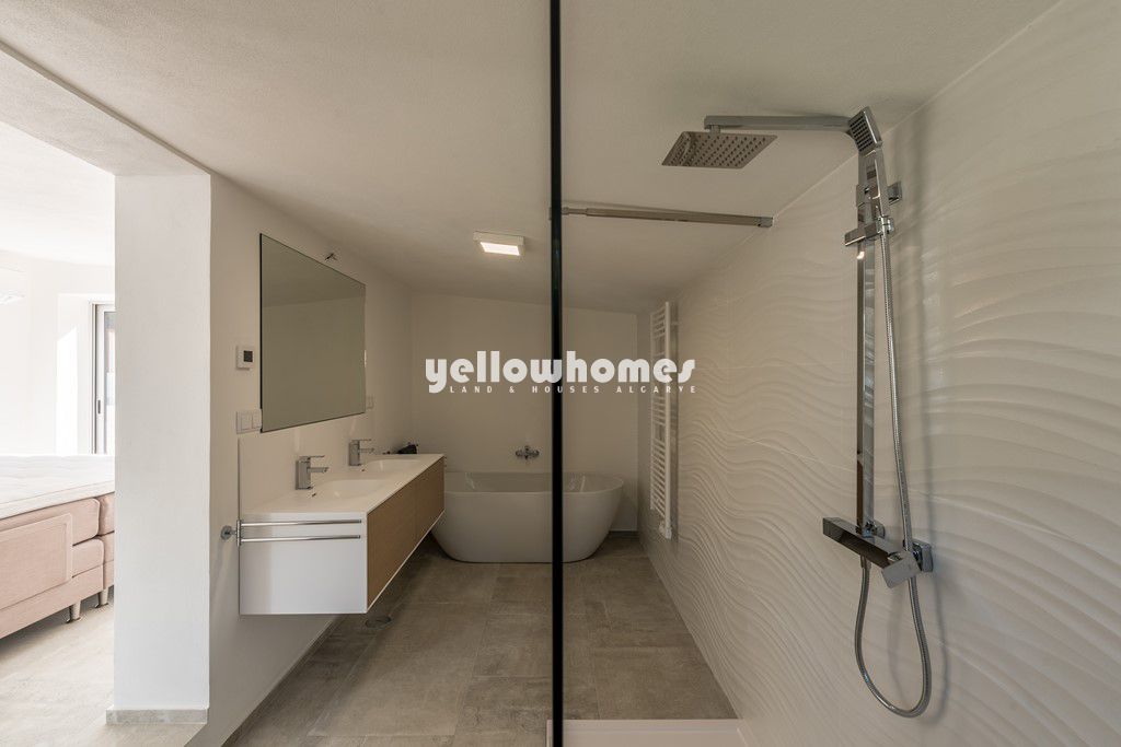 Esta moderna propriedade completamente remodelada fica a uma curta caminhada de uma das praias mais deslumbrantes e das lagoas naturais do Algarve. A casa principal e composta por uma sala de estar-/ jantar espacosa, cozinha equipada, 3 quartos com casas de banho. O anexo separado e composto por uma sala de estar, cozinha equipada, 1 quarto e casa de banho. Toda a propriedade possui piso radiante, ar condicionado, paineis solares para agua quente sanitaria e janelas com vidros duplos. Externamente encontra-se uma bela piscina com pre-instalacao para aquecimento, terracos e um bonito jardim de facil manutensao. As infraestruturas da urbanizacao sao muito boas e a propriedade localiza-se muito perto da praia, Vale do Lobo, Almancil, Quarteira, Vila Sol, varios supermercados, restaurantes, lojas e cafes, varios campos de golfe, um parque aquatico e muitas outras comodidades. Alem disso e ao contrario de muitas das outras urbanizaces na zona, o empreendimento nao possui taxas de condominio. Uma propriedade impressionante.